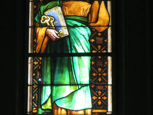On the roof of the church are painted panels that tell the history of the church's foundation.